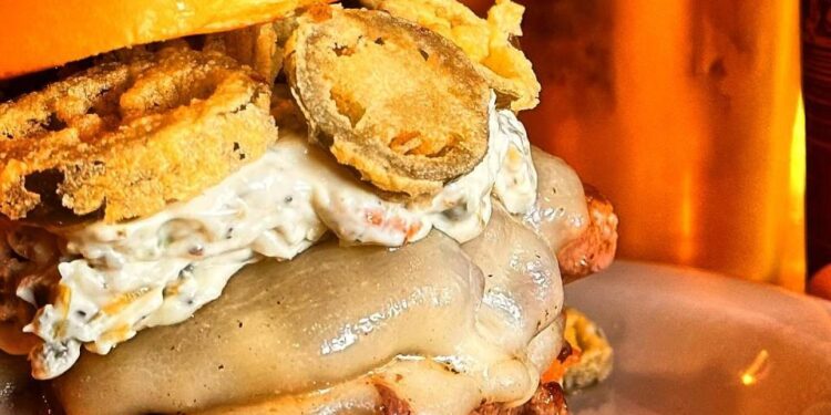 This crowd-pleasing burger at Sixes & Sevens is sure to hit all the right notes. The Big Poppa Smash Burger is two seasoned smash burger patties topped with melted provolone, jalapeno bacon cream cheese spread, and deep fried pickled jalapeños loaded on a soft butter griddled potato roll for $16. Try it today at 7 South 6th St., New Bedford.
